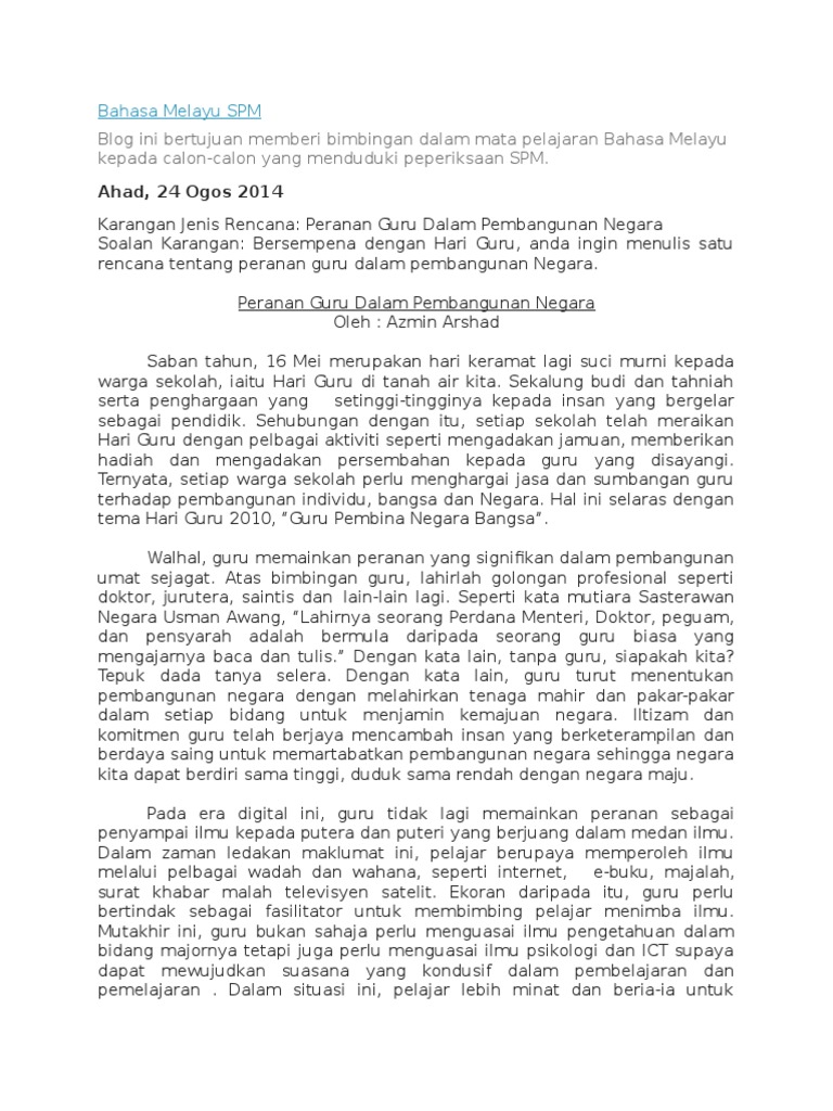 Contoh Contoh Karangan Cemerlang Spm